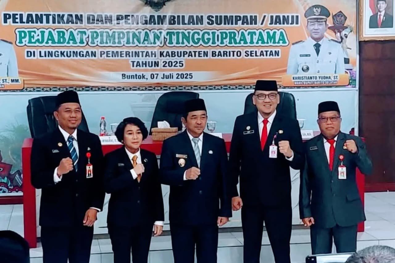 “Pelantikan ini sudah mendapat persetujuan dari Menteri Dalam Negeri melalui surat nomor 100.2.2.6/3581/SJ tanggal 3 Juli 2025, tentang pengangkatan dan pelantikan pejabat pimpinan tinggi pratama di lingkungan Pemerintah Kabupaten Barito Selatan,” jelasnya.