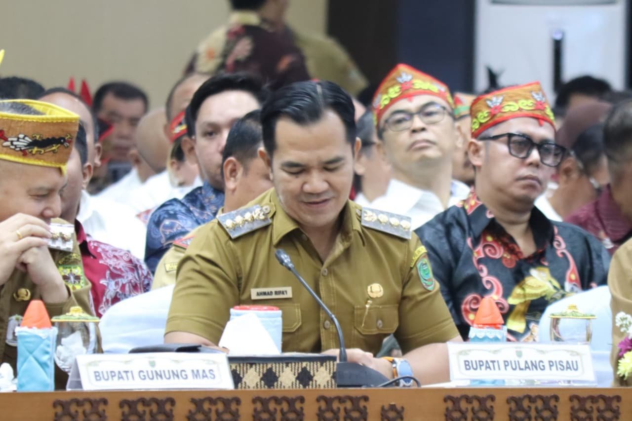 Bupati Pulang Pisau, Ahmad Rifa'i saat menghadiri Rapat Koordinasi Optimalisasi Pendapatan Asli Daerah sektor Perkebunan dan Pertanian di Aula Jayang Tingang, Kantor Gubernur Kalimantan Tengah, Palangka Raya, Senin (20/10/2025).