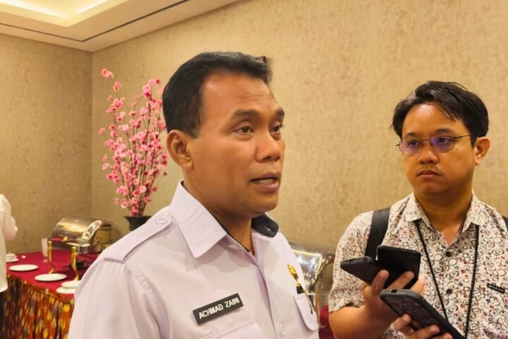 Staf Ahli Bidang Pemerintahan, Hukum, dan Politik, Alman P. Pakpahan saat memberikan sambutan dalam kegiatan Lomba Cerdas Cermat Seni dan Budaya di Atrium Palma, Kamis (30/10/2025).
