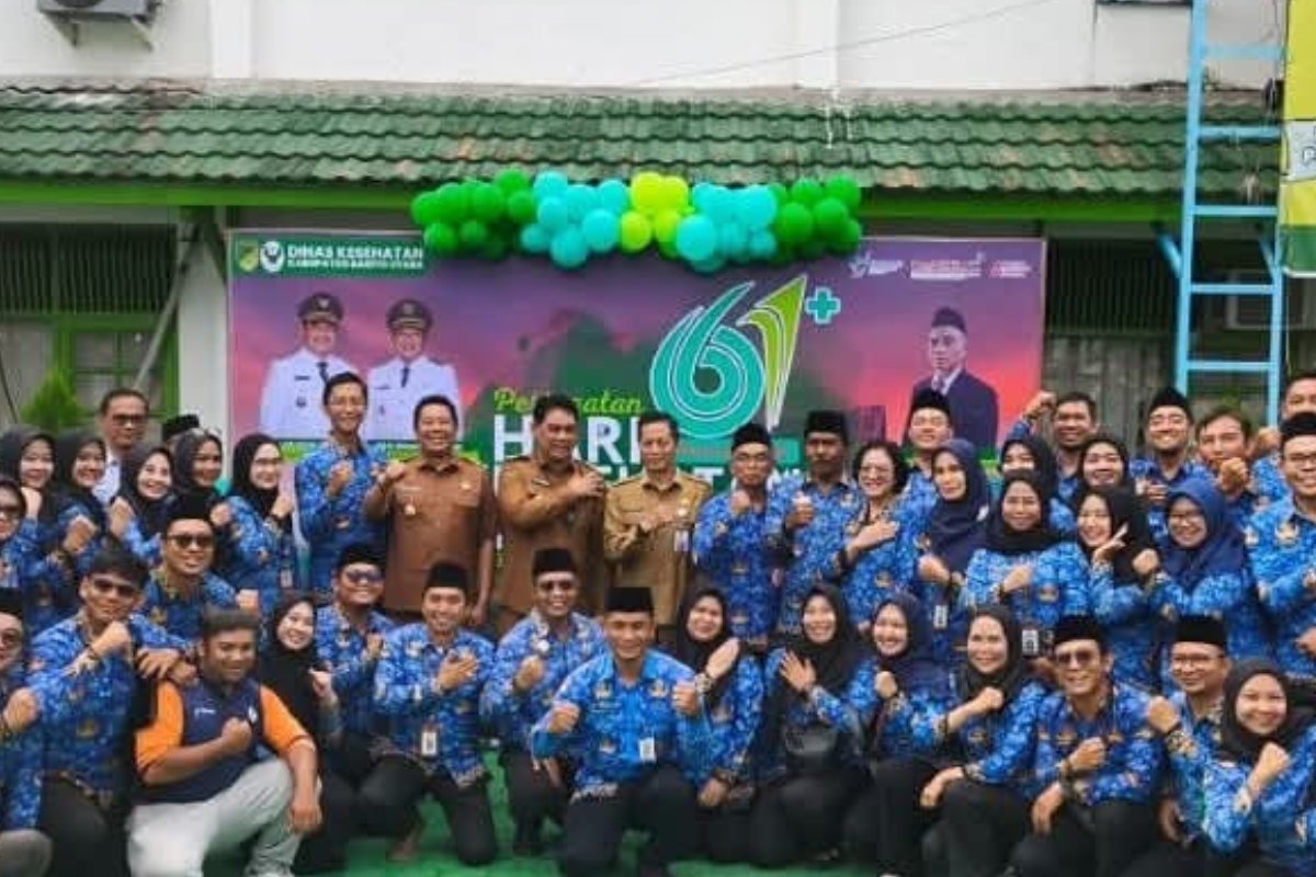 Bupati Barito Utara, Shalahuddin, memimpin apel peringatan Hari Kesehatan Nasional (HKN) ke-61 yang digelar di halaman Kantor Dinas Kesehatan Barito Utara, Selasa (18/11/2025).