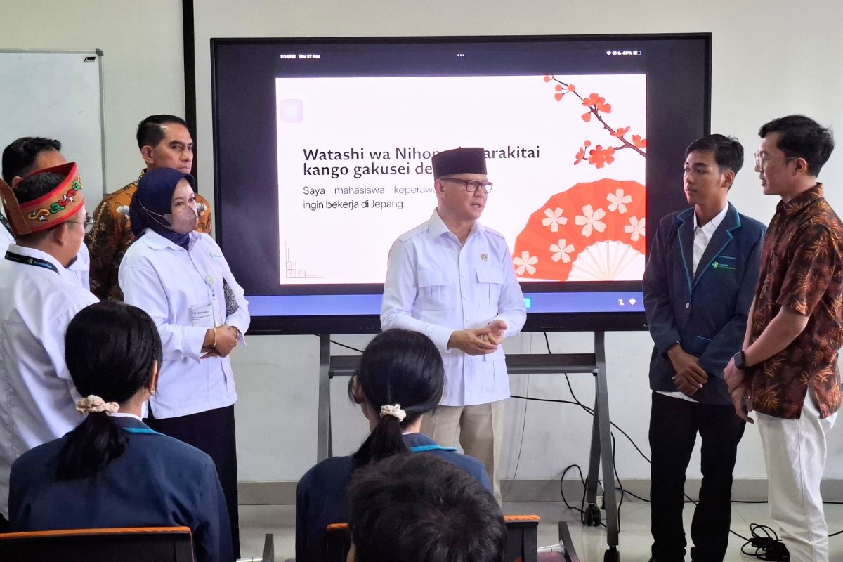 Palangka Raya – Di sela kunjungan ke Poltekkes Kemenkes Kota Palangka Raya Menteri Pelindungan Pekerja Migran Indonesia (P2MI), Mukhtarudin menyempatkan menyapa mahasiswa kelas internasional bahasa Jepang yang diprogramkan kampus tersebut.