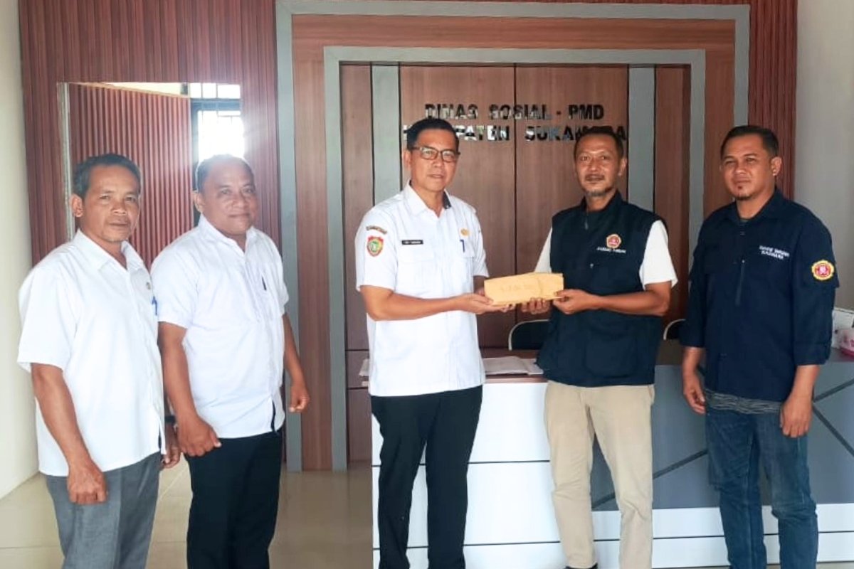 Ketua Karang Taruna Sukamara Aan Nurhasan saat menyerahkan laporan hasil penggalangan dana kepada Dinas Sosial dan PMD Sukamara. PERSPEKTIF SPACE/AAN NURHASAN