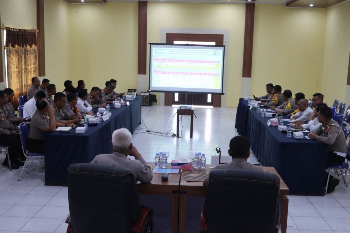 Rakor dipimpin Kapolres yang diwakili Wakapolres Sukamara Kompol Sri Mulyono, bertujuan untuk menyamakan persepsi sekaligus mematangkan perencanaan pengamanan perayaan Natal 2025 dan Tahun Baru 2026 di wilayah hukum Polres Sukamara.