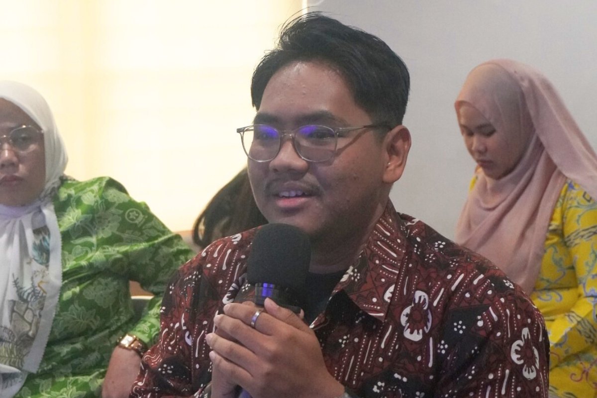 Sekretaris Bidang Komunikasi, Informasi dan Telekomunikasi PW Pemuda Muhammadiyah Kalimantan Tengah, Achmad Zaki Abrori saat mengikuti Sekolah Pasar Modal Syariah di Kantor BEI Kalteng, Sabtu (14/2/2026). PERSPEKTIF SPACE/YOAN PRAMOGA